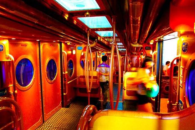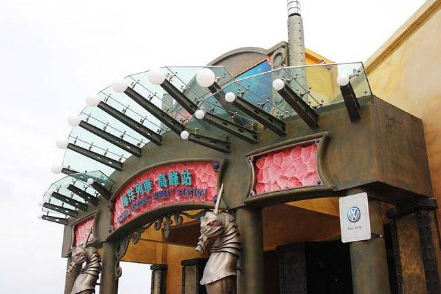 【海洋列车】具有新颖的创意,客车设计为19世纪探险家潜水艇,车厢内配备多媒体系统,通过多媒体播放仿真影像,让旅客亲身经历“深海历奇”的探秘旅程,往返途中的影片更有不同“剧情”,如被巨型八爪鱼攻击或海底火山爆发等,给旅客带来不同奇幻刺激的体验。该缆车不仅是交通工具,而且是新奇游艺设施。(来自百度)