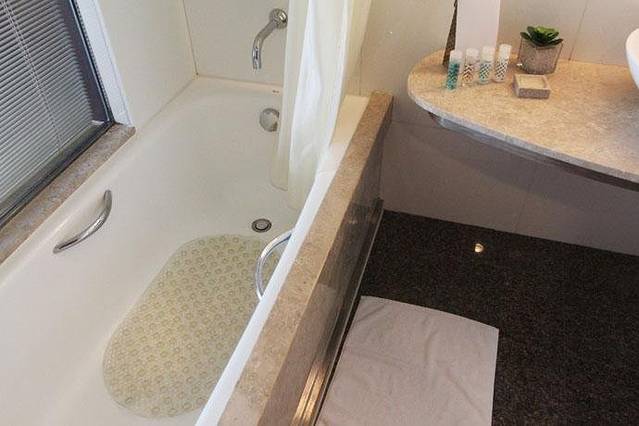 ▲【香港如心南湾海景酒店】卫生间白色的小袋子里面装着一些小用品,非常贴心。