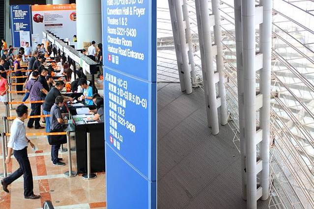 ▲【香港会议展览中心】内部的秩序井然,在内地展览更多地是看到人多嘈杂的场面。