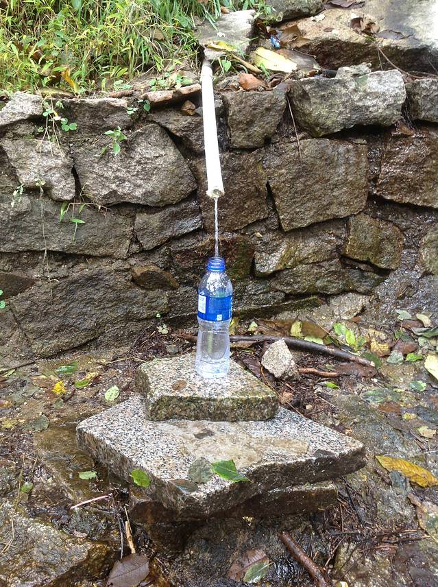 进北线的大门,不远处就有几眼泉,我接了一瓶泉水,回去泡茶喝,甘甜
