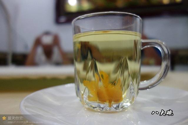 名字最土气的八大碗赢了!先上了一杯花茶,一整天的疲惫之后,这杯茶是如此惬意。可以再来一杯吗,限量一杯!
