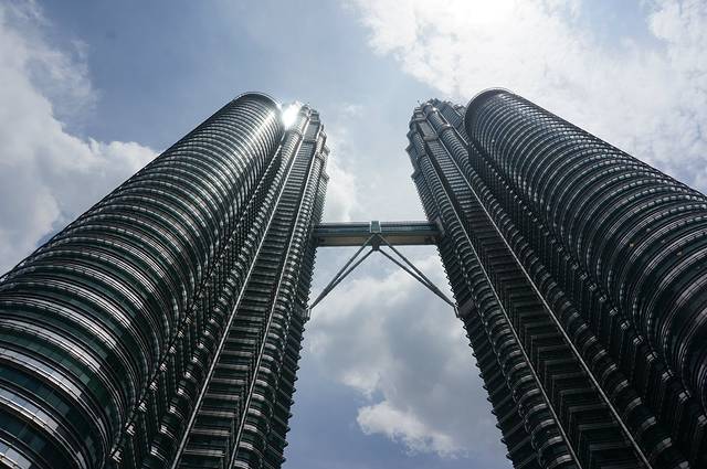 白天的双子塔,找不到角度照全景,真的很高。
