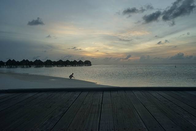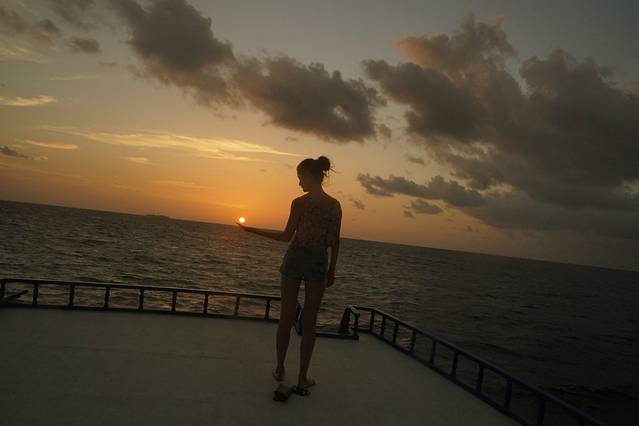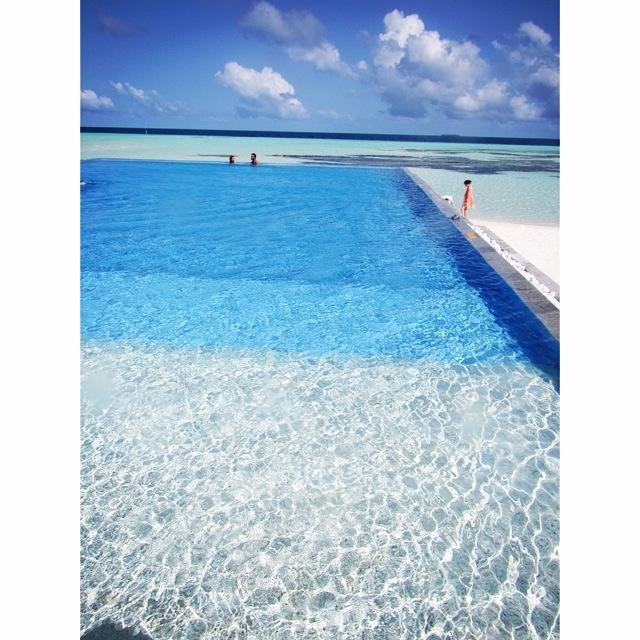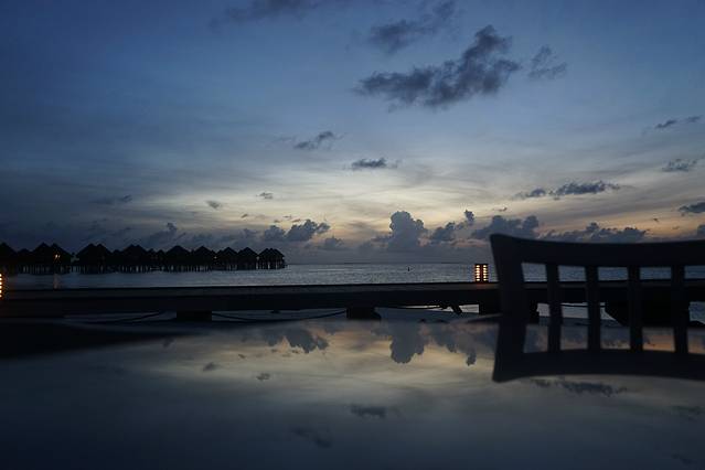 早上六点半起床看日出 随着天色变亮才完全看清楚马尔代夫的海和岛上的一切 早餐过后就在海边散散步拍拍照 晚餐是在沙滩上龙虾BBQ 然后去游泳 岛上两个游泳池都临着海 靠在池边望眼放去就是海 晚上11点看当地人庆祝国庆举办的活动 打着鼓 唱着歌 跳着舞 然后回房入睡