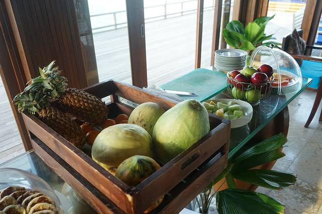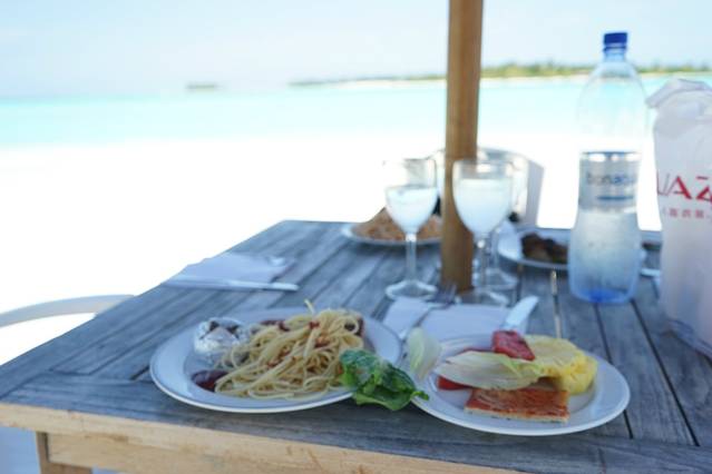 我们在旅行社报的行程包含早晚餐 全部自助 岛上的食物先不论好不好吃 反正新鲜 特别是水果 其次西餐较为多 面包 沙拉 牛肉 牛奶 麦片 煎鸡蛋 炒饭 炒面 冰淇淋等等 建议爱吃辣椒的人可以带一瓶辣椒或者咸菜 我是长沙人 大人们没辣椒下不了饭 就带了一瓶超级辣的辣椒 正好吃完 小黑一直我们说我们带的辣椒不辣哈哈 因为没有中餐 又舍不得在餐厅花上几十刀饱腹 就在出发前带了几盒泡面 但是在那边都没吃完 其实大家只需要平时爱吃的零食像饼干啊熟食啊火腿肠啊什么的就好了 虽然游泳浮潜消耗量大 但是并不会很想吃泡面 我的建议是 饿了就吃 多次少量