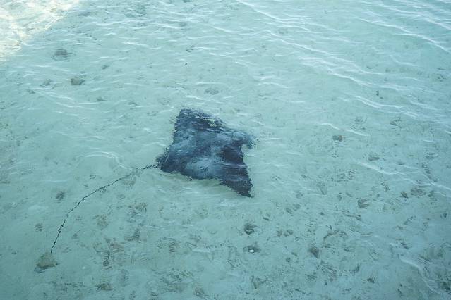 和第一天一样 用过早餐后在海边走了一会儿 临近中午的时候跟着教练学风帆 岛上水上活动很多 见到很多老外都在玩类似冲浪都觉得很酷 我也想学冲浪 但介于教授语言有阻碍就还是学比较容易的风帆 站上去还能转弯的感觉好爽 我要记得一辈子 下次去海边再试试 下午五点左右我们就上一艘船出海钓鱼了 没有鱼竿 就是一卷渔线上吊着一个鱼钩 钩上铒就放入大海 不知道凭哪里的感觉我钓上来一条不知道叫什么的鱼 我想起去年在澎湖 也不知道怎么就钓上一条小管 想想它们也是蛮可怜的