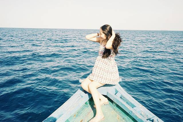 今天是列岛一日游 早餐后集体出发 在岛上租好潜水设备后我们准备开船去浮潜 有一个比我大一岁的小黑带我去远处 我跟着他游游游一直到很浅的珊瑚区 珊瑚触手可及我还有点担心会扎到我 可是我的水下相机竟然没电了 上船后 小黑把船开到另一个点停下示意我们下去 原来这一上午我们是有三个潜水点 但小黑每次都不说还有下次 搞得我们每次都换了衣服 第一次潜完上来我就开始不舒服 一直就靠在船头 后来直接爬到第二层 没有遮掩没有高护栏 站在更高处看海 晚上 我妈邀了家人在我们屋楼下沙滩椅的地方来庆祝我的生日 酒店送来的生日蛋糕还有红酒 还有没吃完的零食 我们坐在一起 许愿 吹蜡烛 分蛋糕 说话 这是我第一次肆无忌惮的在海边过生日 蟹蟹与海都在 这是我高三最想要的