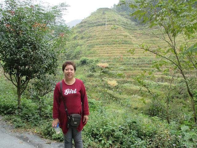 客栈露台上欣赏到的梯田美景,那些都是木质吊脚楼喽,我们住的就是那样的哦,就是比你们高,哈哈~