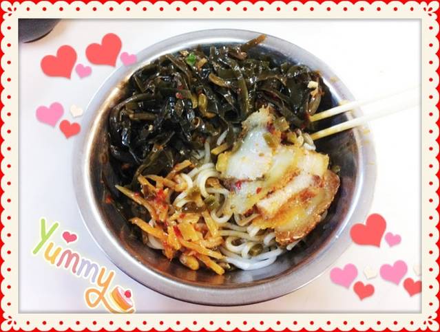 聚香合米粉,3.5元/份,这个是卤菜的,里面配有大片的香香的锅烧肉~