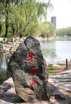 标志性的大石头上书三个大字“未名湖”,嘻嘻~~