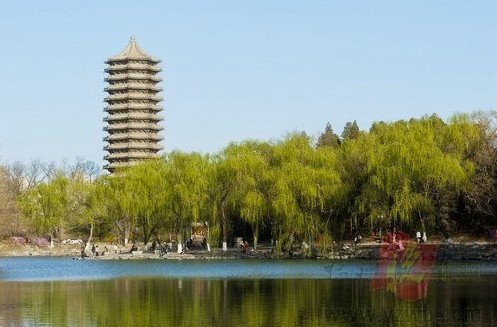 顺着塔一直往前走,就看到传说中的北大未名湖了,湖水清澈见底,蓝天白云交相辉映,景色美翻啦!