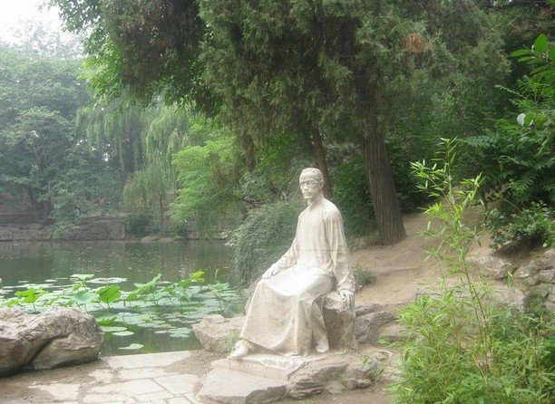 朱自清像。传说中的“荷塘月色”,百闻不如一见,不过我只能欣赏到白天的荷塘了。