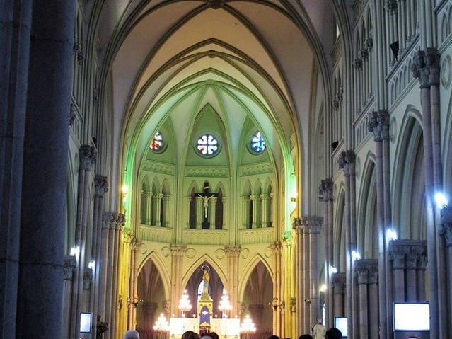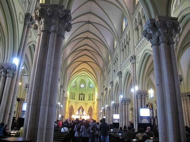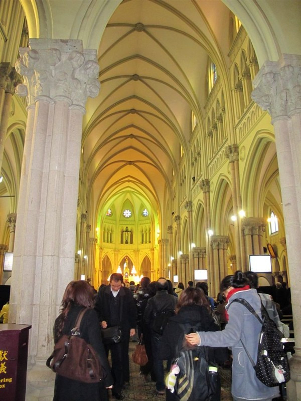 沐浴在细雨中的徐家汇大教堂,显得庄严肃穆。