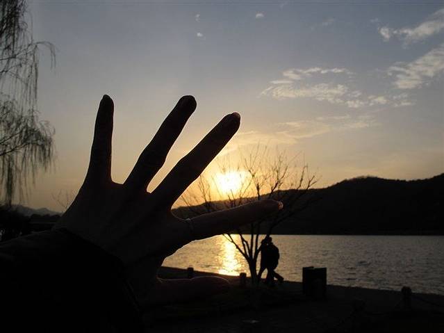 夕阳余晖洒在湖面,一点点的湮没在湖底,忽然害怕看此情此景,刹那明白英不愿看夕阳的理由,那该是如何的情绪,该如何面对,我亦无语。一点又一点的痛涌上心底。