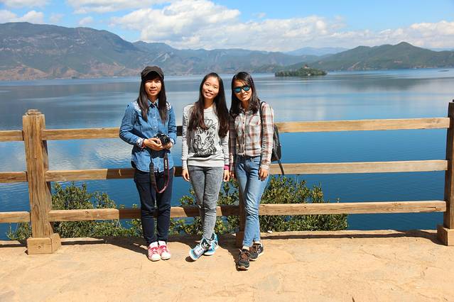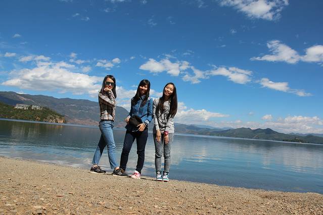 泸沽湖的游玩跟洱海差不多,也是环湖,自行车40元一辆,电动车80一辆,我们开始太高估了自己,打算踩单车环湖的,因为电动车实在是贵啊,但是我们忽略了这边的海拔...和我们的体力....环湖的路全是山路!!我们骑了一个坡就喘到不行了,果断回头换电动车,结果因为太晚了电动车全部租完了.我们只能被迫包车环湖,300元包一辆,可以坐7人,可是由于时间太晚了,没有人和我们拼车..只能算人头,80元一人.司机充当导游,随时可以停车拍照.不过我们只有三个人,虽然贵了点,但还是有好处的,好处就是不用等同车的人拍照,自己想停多久都可以.包车这些路上都是,不怕找不到车的