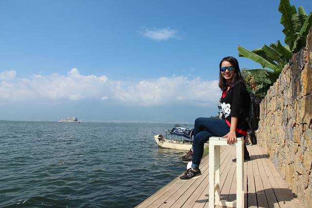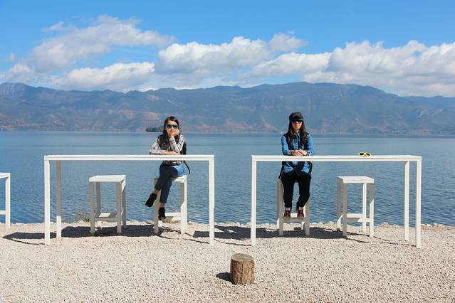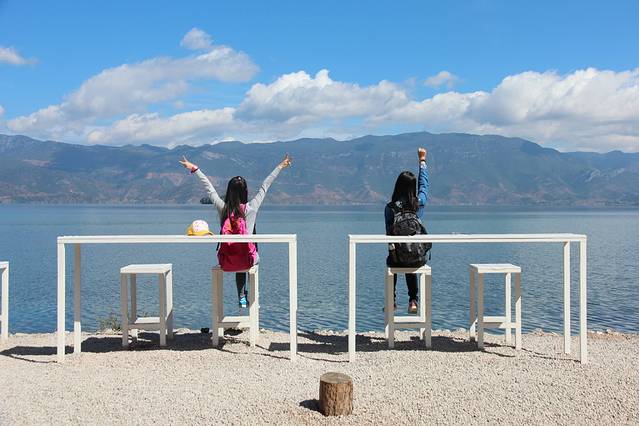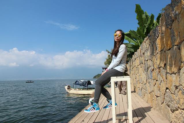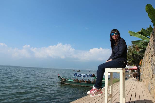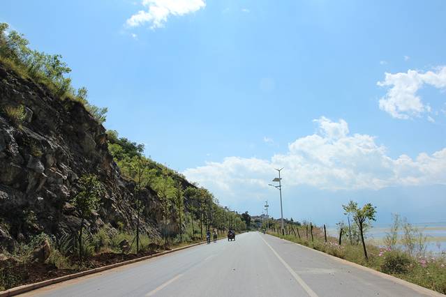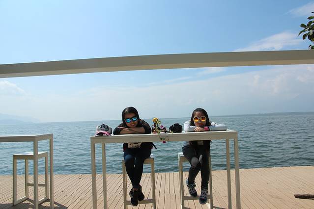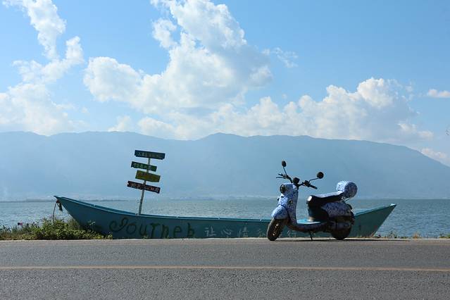 昨天晚上已经跟包车的联系好了,所以一早就告别客栈老板启程到双廊.跟我们同车的两个女的超级不靠谱居然到点了还没有醒又不接电话,于是我们被耽搁了大半个小时,司机说再不来就走了!在这里提醒各位,一定要准时啊你迟到会影响很多人的!!到了双廊先向司机打听好怎么去我们住的青旅,然后安顿后之后又出门逛了,我们三个人租两台电动车代步,好像40元一辆吧,是算一天的,可以一直租到晚上8点再还,挺划算的,有体力的可以选择自行车,不过自行车环海有点吃力吧....环海我们也没有真的环一圈,就走了大半就回头了,因为怕电动车没电,另外往前走好像景色也差不多