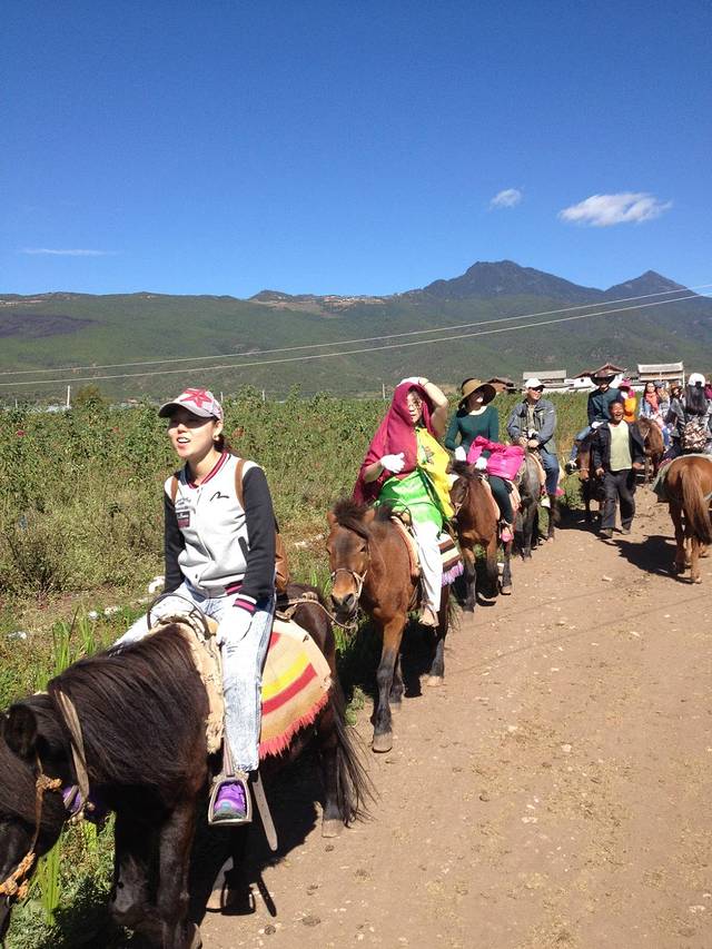 因为骑的是领头马,不用牵绳也会自己走,挺好玩的,而且那马夫也很搞笑,一直叫我们留下来要介绍个黑黑的帅哥给我们认识,路上还看到很多玫瑰花,跟我们平时看到的都不一样,这里的玫瑰花大多拿来弄成鲜花饼之类的,可惜在马上没有拍照