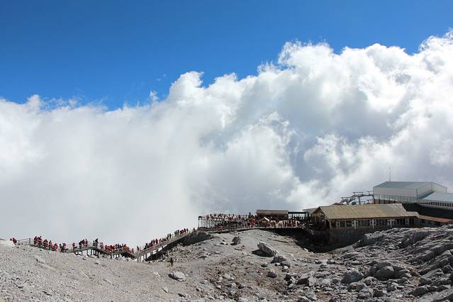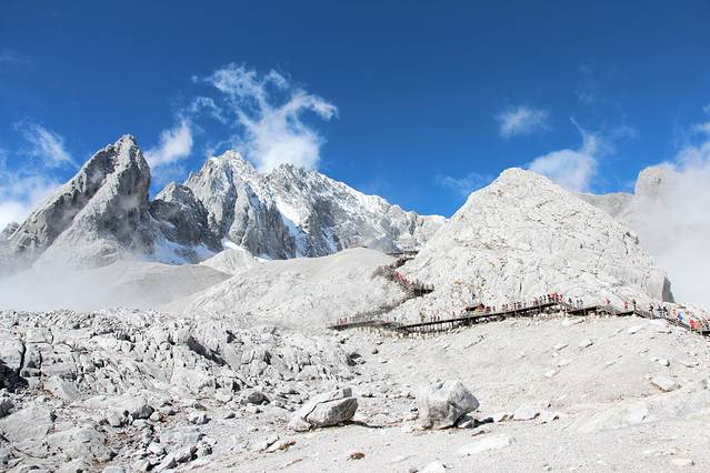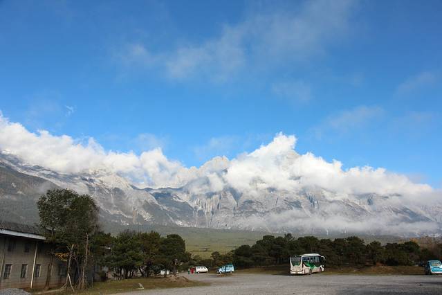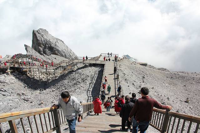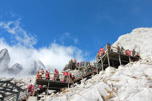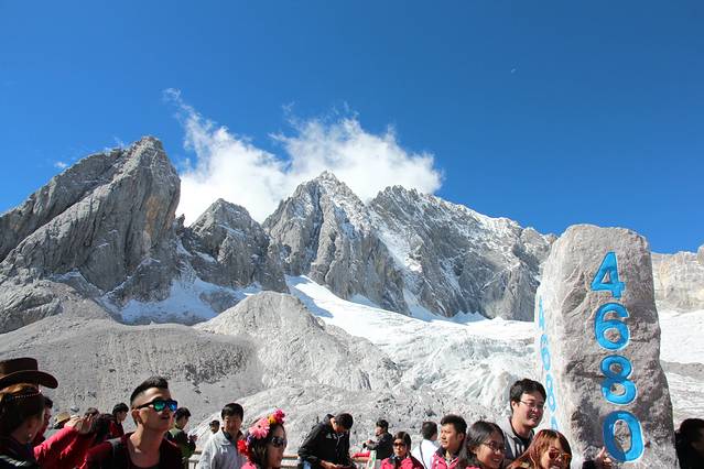 去玉龙雪山也是在客栈报的团,380元每人,包来回车费,门票,大缆车费用,雪山还有小缆车,推荐大家还是坐大缆车,由于有学生证,每个人还可以退回50元门票,所以就330每人.而且客栈老板还免费借给我们羽绒服,如果去到雪山再租的话要50元一件啊,还要1千元押金!而且还给了三瓶氧气瓶我们,25元一瓶,用了才回来给钱,不用就可以退回去,如果去到雪山才买的话要7、80一瓶啊,而且还不能退,只能用了.那些导游叫大家一上缆车就要开始吸氧,由于我们之前看过别人说其实不用吸氧,所以我们就一直没有吸氧,最后事实证明,不吸氧完全没有问题,就是比较容易累,不过累了就坐下休息一下就没事了。我们三个人一直走到了最高点都没有吸氧,他们有些吸了氧也没有走到最高点.....