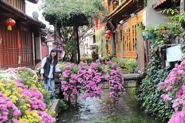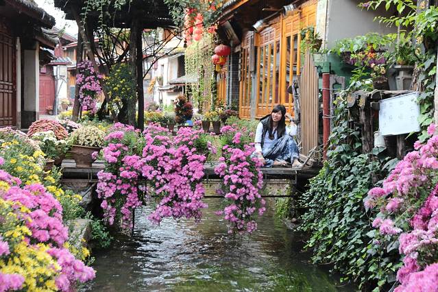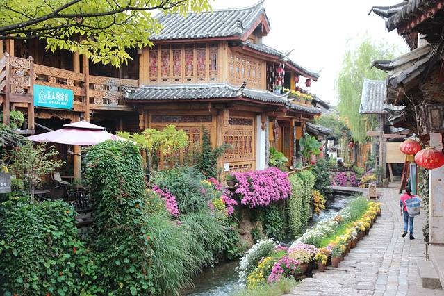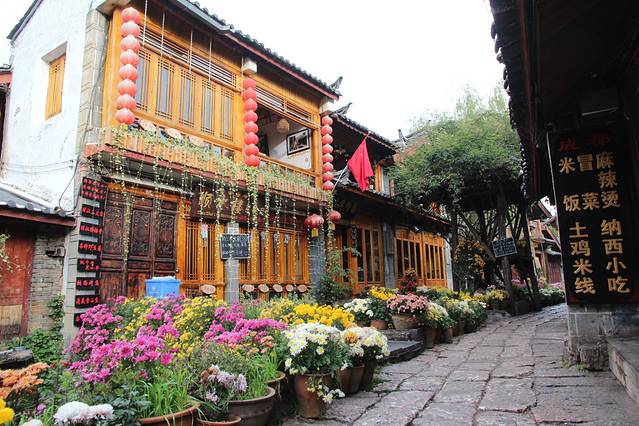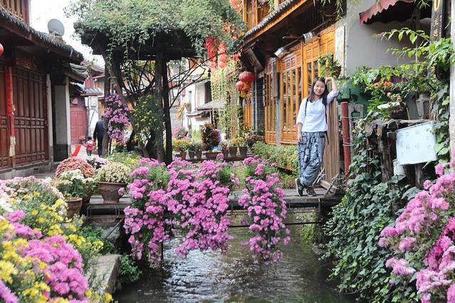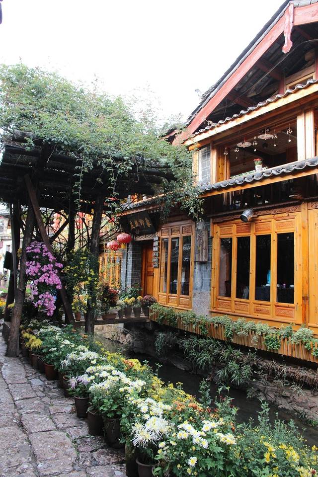 丽江古城,听说国庆的时候布置了许多鲜花,我们国庆结束后去才去的,鲜花居然还没有凋谢!还超美的.为了避开人流,我们一早就起床出门拍照.