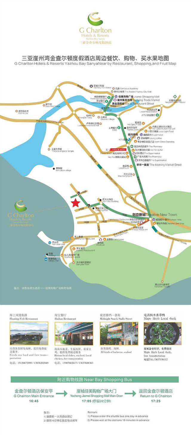 2000年的三亚就是崖城,可是说这里人杰地灵,美食遍地。到南山寺或是大小洞天来的游客看清楚了。住在金查尔顿度假酒店的朋友按下图乘坐其到崖城镇的班车就可以到了。