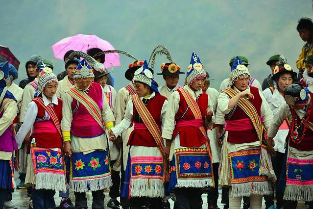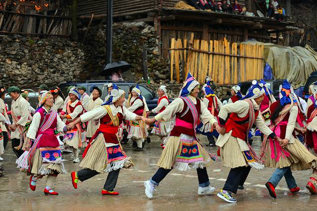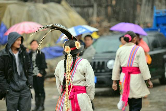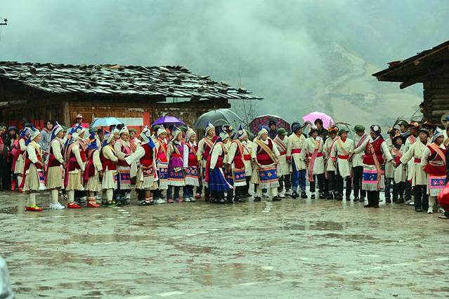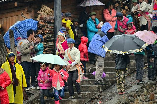 (村里的男男女女、老老少少,都冒雨出来了,马上就要上演"阿尺目刮"舞蹈了)