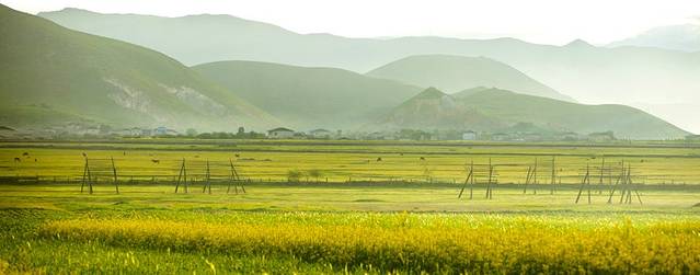 从香格里拉出发,沿着214国道往北德钦方向30余公里,国道左边就能俯瞰一个坐落在群山之间的小盆地,盆地上矗立着百来户白色的藏房,与大片的青稞麦地相映成趣,这里就是尼西乡汤堆村。在藏语中,尼是指太阳,西意为出生,尼西的意思就是太阳升起的地方。