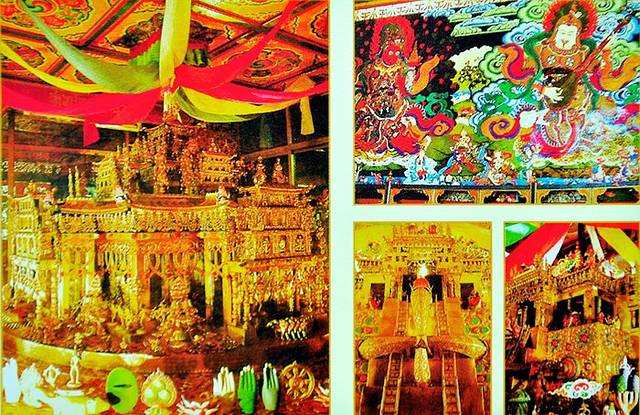 寺内珍贵文物众多:有由原寺院自已铸造、已有数百年历史的太合金大锅;有清代十二世达赖喇嘛馈赠的一幅长为珍贵的一幅长达8.5米、宽5.2米的巨型阎罗王卷轴大唐卡(每年举行跳神法会时展出一次,供香客观瞻礼拜);有用清代五彩丝线精织唐卡——四世班禅像;有藏区独一无二的三十二位香巴拉玉泥塑像;寺院拥有世轮金刚、喜乐金刚、密集金刚和大威德金刚立体坛城,精美绝伦、金碧辉煌,开创了一寺拥有四座立体坛城的新历史。
