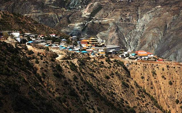 (出了隧道,我们要往山下的澜沧江边走,对岸隐隐约约可以看到村落 )