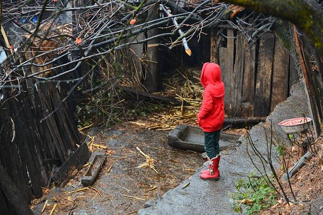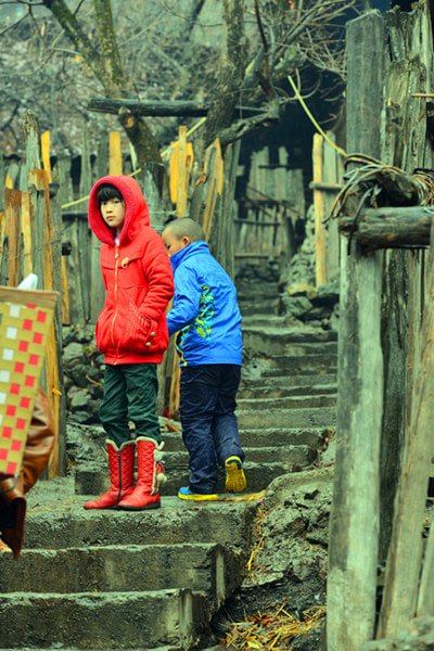 第二次感动,是因为我进村后,看到那些冒着细雨站在土路上,瞪着大眼睛好奇地看着我们这些不速之客的孩童们。