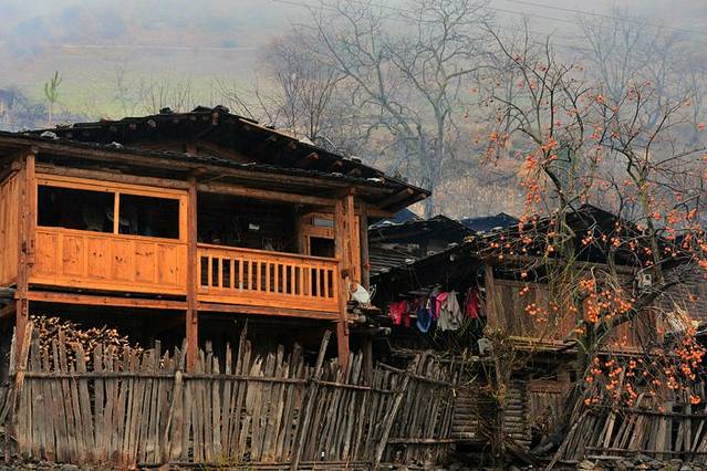(不过才刮过一两场春风,村寨里散落的柿子树,已然挂满果实。)