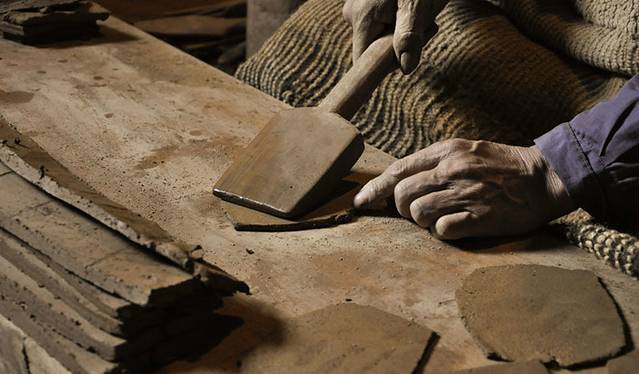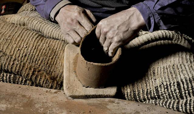 我们走进汤堆村的一个黑陶手工作坊——洛桑恩主的家中,藏家人的热情与纯朴,让我们最短的时间内消除了陌生感和不适,洛桑带我们参观了他们的作坊,用还算流利的汉语跟我们讲述,并演示黑陶的制作过程: