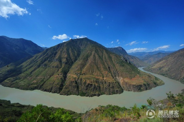 金沙江是长江上游的河段名,因江中含有沙金而得名,金沙江过石鼓后,流向由原来的东南向,急转成东北向,形成奇特的“U”型大弯道,成为长江流向的一个急剧转折,被称为“万里长江第一弯"