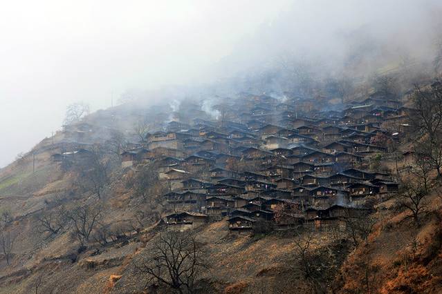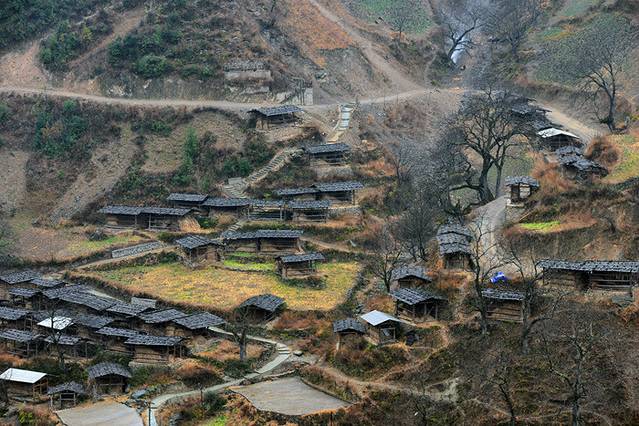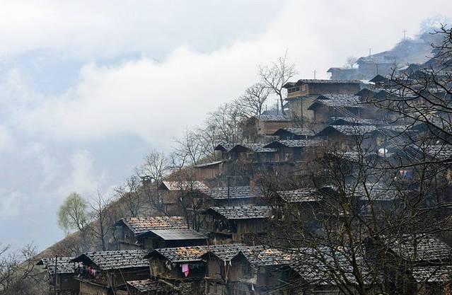 (同乐傈僳族村寨。侧面看村寨,错落有致,很是有韵味)