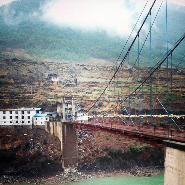 (通过澜沧江上的这个铁索桥,就进入茨中村了 )