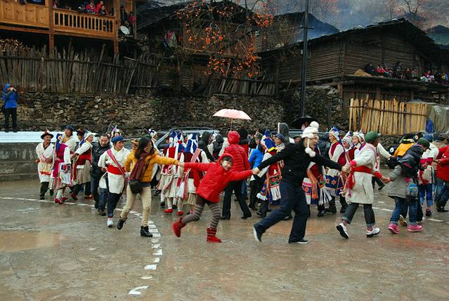 听洛桑恩主说:在某些藏历节日的时候,在村庄里还能看到迪庆藏区最有名的尼西情舞。这个可遇不可求。
