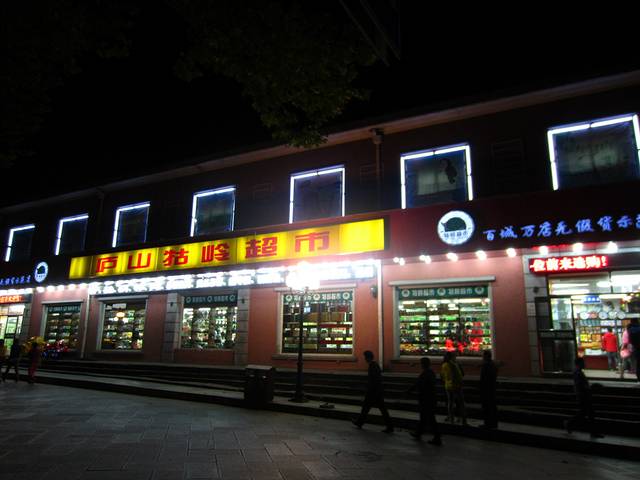 3)买东西:各家商店的价钱差异特别大,一瓶红牛,一家店卖10元,隔壁就卖8元,再走几家就只卖6元了。在这里推荐牯岭镇的一家超市——庐山牯岭超市(如图),物美价廉,跟山下物价一致。(水1.5元,蒙牛牛奶3.7元,红牛6元)
