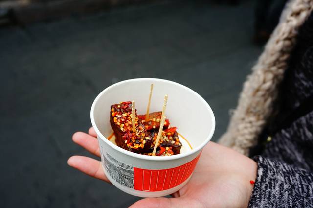 锦里进门就有小吃一条街,有各种好看又好吃的小吃~天还没有完全黑,趁着天亮先开吃啦!