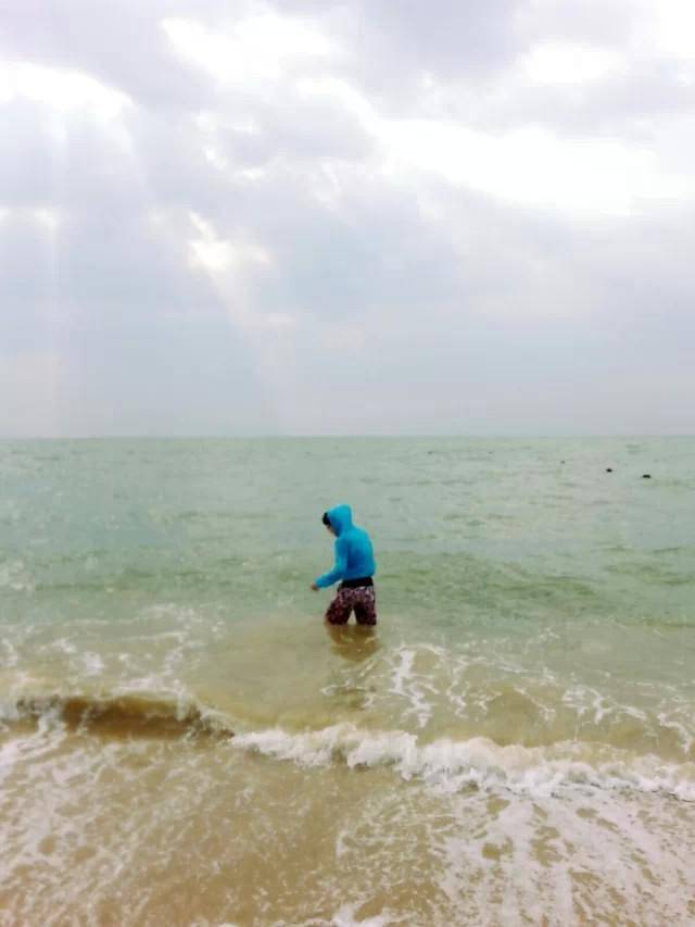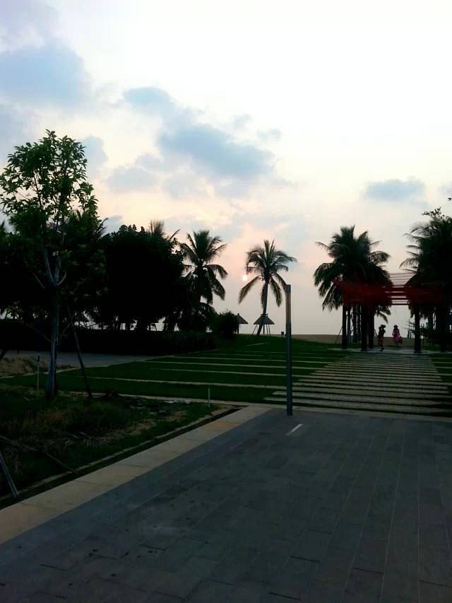 游泳又边泡澡边玩ipad看电影完,我们在最热的时间点午休了一会,到下午4:30的时候,起床准备去酒店私人沙滩看日落!这个龙沐湾据说是看日落的最佳观景地点。
