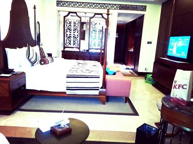 第一天。到三亚机场已经是下午3点多。在机场逛了一下,又吃了肯德基,而且因为租车公司那边没有驾驶证而耽误了一些时间,也没有提前预约酒店的接送服务,所以后来打的到酒店已经是晚上7点。房间内自备晚餐后,两个人8点半就洗洗休息了。