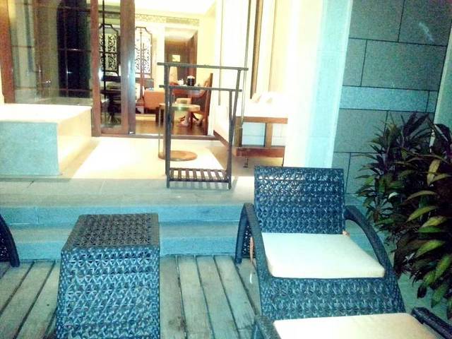 阳台那一块也是有灯的,小泳池没有。我们住的是池畔房。