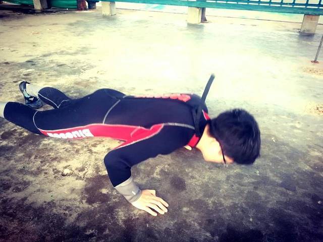 潜水前先热身运动,防止抽筋哈哈。