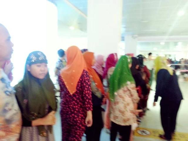 接机人群里好多这样服饰的人。包裹得严实却还是晒得有点黑啊。。