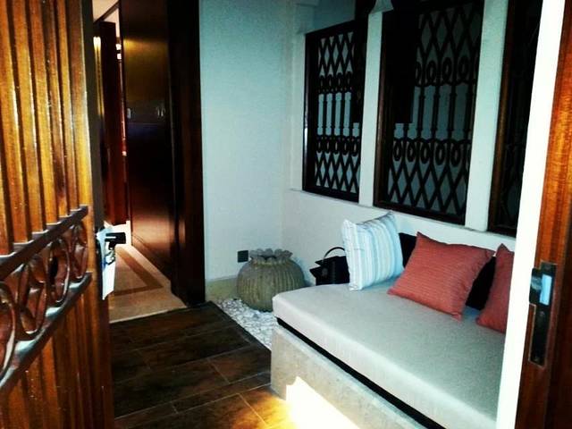 房间内异域风情非常轻快。而且,房间很大!能坐的地方也很多。书桌有2张椅子,旁边有一个巢,窗前有凳,还有一张行李桌在书桌旁可以置放物品。
