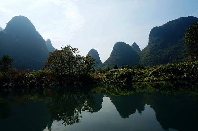 一个晚上的卧铺到达桂林,出了火车站就开始后悔,我带了抗寒的冲锋衣,冬天的厚羊毛围巾。刺眼的阳光像抽耳光一样火辣辣抽在身上。