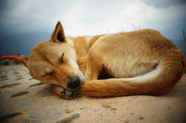 金佛顶上大风嚎嚎的,人来人往,安逸地睡在路边,他要是翻个身,就该掉下去了。