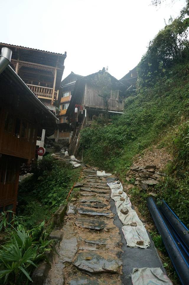早起退了房打算去银行把预留号码改掉,结果8点半过了还没开门。呵呵。果然是地段不一样。路边吃了个肯德基早餐,一路走到了火车站旁的香江饭店坐车,上车前买了块发糕。然后2个半小时艰难的山路,平地里的过山车,一路没敢睁眼,结果还是吐了个天昏地暗。好不容易下了车,进了大寨,才知道,青旅在半山腰上,意味着我要负重,把行李都扛山上去。长长呼了一口气,婉拒了好几个背着大竹篓要替旅客背行李的瘦小的壮族女人。确实不是旅游旺季,游客很少,走着走着发现这寨子挺僻静。前面只有俩游客,不敢走丢,走到岔路口,只好也跟着他们走,后来他们走到了农耕小道,写着游客止步,他们还是勇往直前,没办法,只好硬着头皮也跟上。土质的小路,只容得下一个人行走,没有明显的阶梯,都是一步一步踩出来的。就跟鲁迅说,这里本没有路的,走的人多了,也就有了。上到半路,跟他俩搭腔,才知道他们是要直接爬山顶,跟我走的不是一条道,我只想赶紧找到旅舍,睡一觉也好,吃东西也好,休息也好,总之不要继续爬。途中遇到一个用扁担挑物资的本地男人,他告诉我,我这方向走得离经叛道。抬头望望不知终点的金佛顶,咬咬牙下狠心,跟着这个男人改了方向。绕了几个弯后,已经看不到任何人烟了,前无古人后无来者,突然脑子就止不住地想起微博微信上那些负能量的段子和新闻。悄悄拉远了与他的距离,又从包里掏出了小刀攥手里,又跟旅馆打电话告知迷路请求帮助。不过,结果是我多虑了,很顺利走到了游客道上,道上陆陆续续也能遇到几个游人。不过这条游客通道是通往金佛顶,而不是我要去的那个半山腰的寨子。此时,心里已经咒骂自己无数回了,我这哪里是来旅游,分明是来遭罪。大口喘着粗气,最后终于爬上了金佛顶。山顶大风呼啸,景色却没有想象中的美丽壮观。我终究没赶上你最美的时候,看不到我想看到的希望。坐了索道下山,坐景区小巴在二龙桥下,转车去平安寨。等了一个多小时,一直在纠结,为什么我不直接坐下山去,就可以直接去阳朔或者兴坪,有吃有喝有艳遇,干嘛非要在这鸟不拉屎的地方活活折腾。不然就直接拦辆游客的车,拉我回桂林,我要回家!可是我还是没敢。赶上个卖水果的,买了点橘子还挑了个大石榴,老老实实坐路边等车。对,没吃饭,一直没吃饭!吃不下,晕车,劳累,总之就是太难受!终于辗转到了平安,终于找到了旅舍,我跟前台小姑凉说的第一句话就是,我得救了。