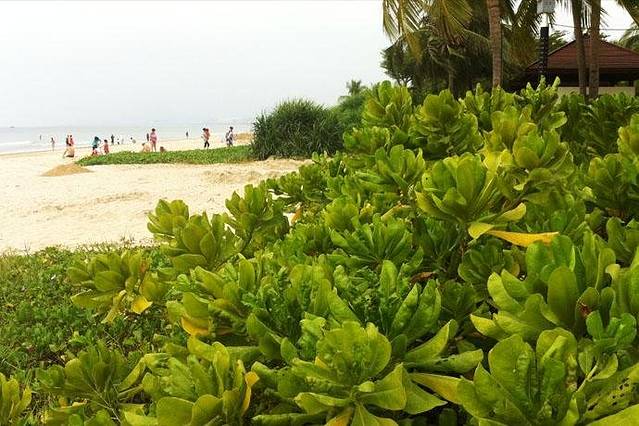 ▲干净的三亚湾海边,漂亮的热带植物。沿着三亚湾的海岸线随处可见配套设施很好的公共卫生间,露天的淋浴冲洗身上的泥沙,还有三亚旅游咨询服务中心。小区门口步行30米左右即可到达公交站牌,站名叫:绿海田园小区。到凤凰机场、南山、天涯海角、海月广场都有直达的公交车,非常方便。转一圈熟悉了周边的环境,等待大学同学雯下班来找我吃饭。带我去地道的海鲜市场去吃现加工的海鲜。我的大爱——海鲜。
