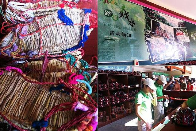 ▲“湿身”呀诺达,这个游戏是【踏瀑戏水】需要穿草鞋戴头盔,所有物品寄存,衣服都会湿透,如果想玩最好带一身备用衣服,经过教练指导后才可以玩。价格98元,包括保险、送草鞋、物品寄存费。
