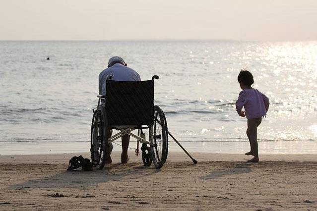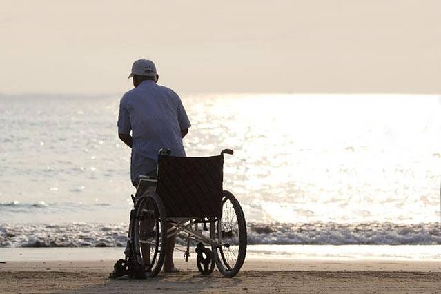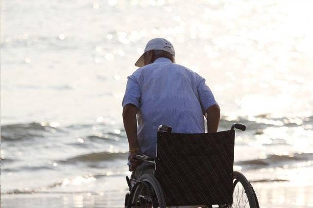 ▲我一直站在老人身后观望着,待孩子走开,老人紧握轮椅的把手,试图靠外界的力量站起来,我看到生命的力量。