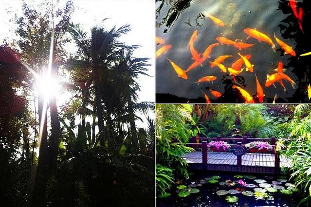 ▲【呀诺达】景区的五星级的卫生间,椰子树的围绕,可观赏的金鱼和荷花,里面的卫生也相当干净。