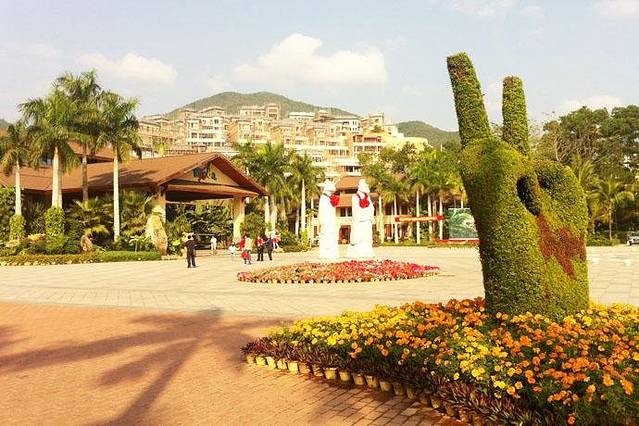 ▲【呀诺达】国家AAAAA级景区。景区正门广场上的花坛是【呀诺达】的手势,“呀诺达”,是形声词,在海南本土方言中表示一、二、三。景区赋予它新的内涵,“呀”表示创新,“诺”表示承诺,“达”表示践行,同时“呀诺达”又被意为欢迎、你好,表示友好和祝福。广场的中间带着大红花的雕塑是今年的属相“蛇”,游客可以跟自己的属相合影留念,广场周围有其他11个属相。很有意思的设计,让游客有东西可以拍照。